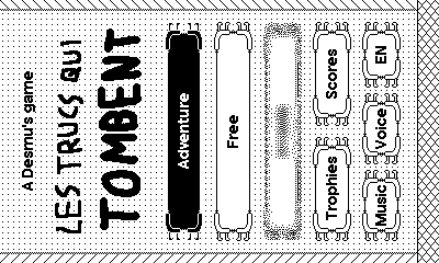Les Trucs qui Tombent (Things That Fall) is an adventure in the form of an arcade visual novel, it means there are endless reading stages ruining action stages, or endless action stages ruining reading stages, depending on your preferences.